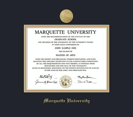 Marquette University Diploma (2022 to Present) Frame with Medallion and Black and Gold Double Mat and Gold Embossing