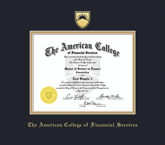 The American College of Financial Services Diploma - Graduate School Frame with Black and Gold Double Mat and Gold Embossing (fits 8.5 x 11 inch diplomas