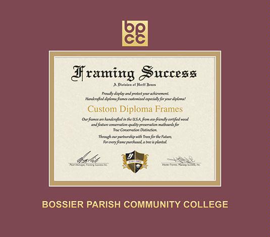 Bossier Parish Community College Diploma Frame with Maroon and Gold Double Mat and Gold Embossing