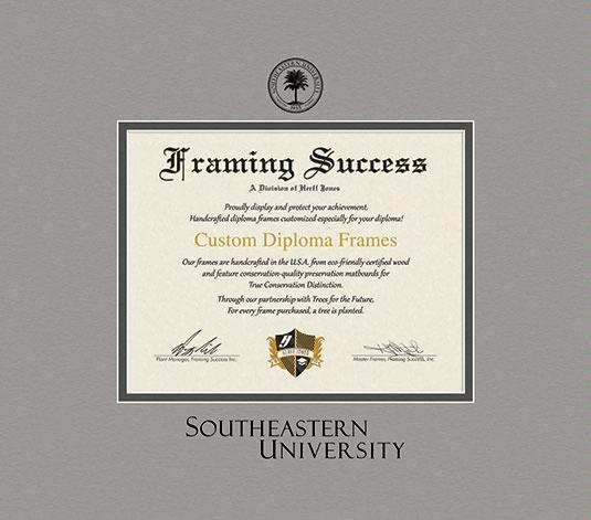 Southeastern University Diploma - MA (8/14 to Present) Frame with Paloma and Moonrock Double Mat and Black Embossing