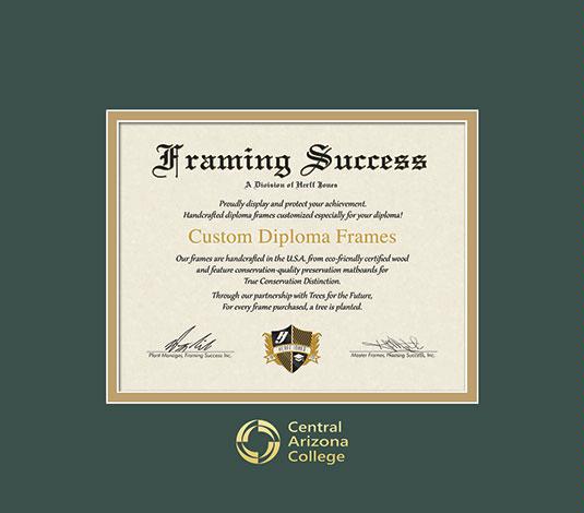 Central Arizona College Diploma Frame with Green and Gold Double Mat and Gold Embossing