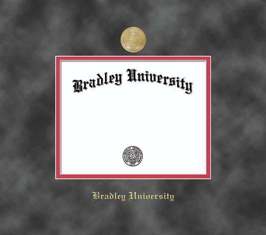 Bradley University Diploma (7/16 to Present) Frame with Medallion and Grey Suede and Red Double Mat and Gold Embossing