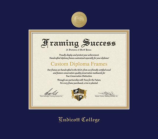 Endicott College Diploma - MA (5/06 to Present) Frame with Medallion and Navy Blue and Gold Double Mat and Gold Embossing