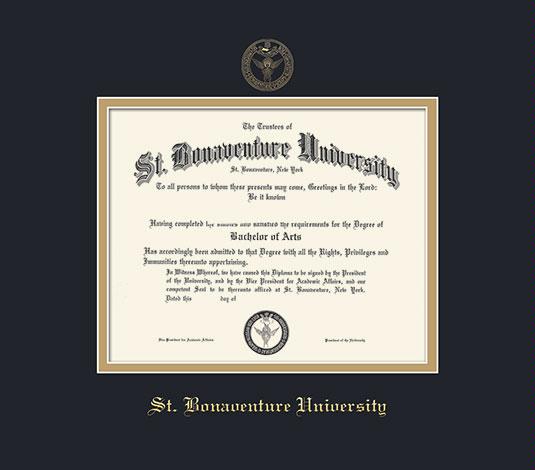 St. Bonaventure University Diploma (6/22 to Present) Frame with Black and Gold Double Mat and Gold Embossing
