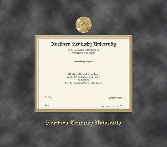 Northern Kentucky University Diploma - PhD Frame with Medallion and Grey Suede and Gold Double Mat and Gold Embossing