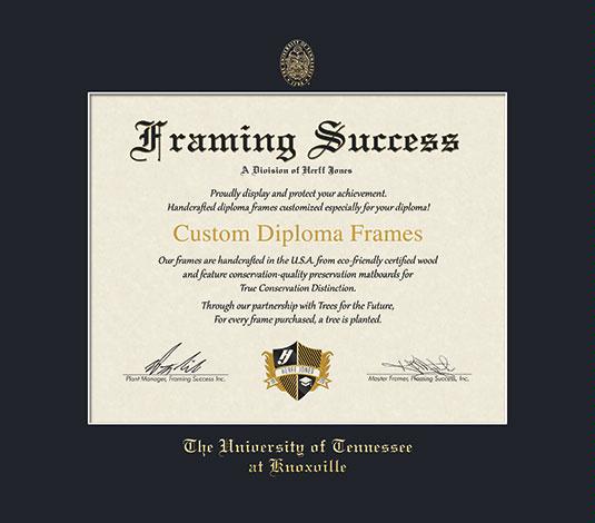 University of Tennessee- Knoxville Diploma - BA/MA (8/22 to Present) Frame with Black Mat and Gold Embossing