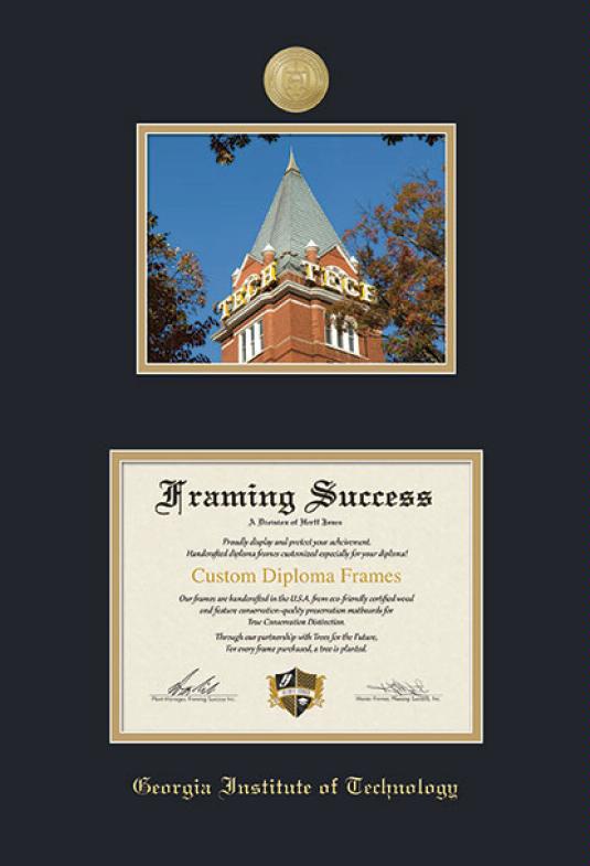 Georgia Institute of Technology Diploma (9/22 to Present) and Photo Frame with Medallion and Black and Gold Double Mat and Gold Embossing