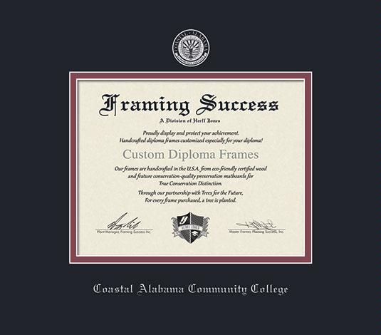 Coastal Alabama Community College Diploma Frame with Black and Maroon Double Mat and Silver Embossing