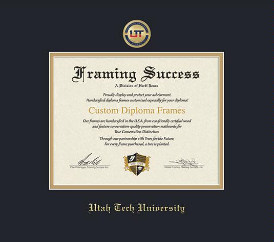 Utah Tech University Diploma - Assoc/BA/MA (7/22 to Present) Frame with Medallion and Black and Gold Double Mat and Gold Embossing