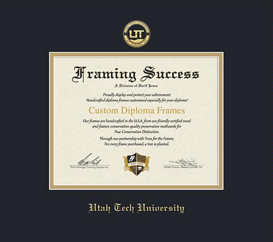 Utah Tech University Diploma - Assoc/BA/MA (7/22 to Present) Frame with Black and Gold Double Mat and Gold Embossing