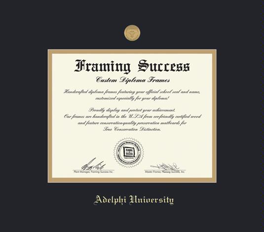 Adelphi University Diploma Frame with Medallion and Black and Gold Double Mat and Gold Embossing