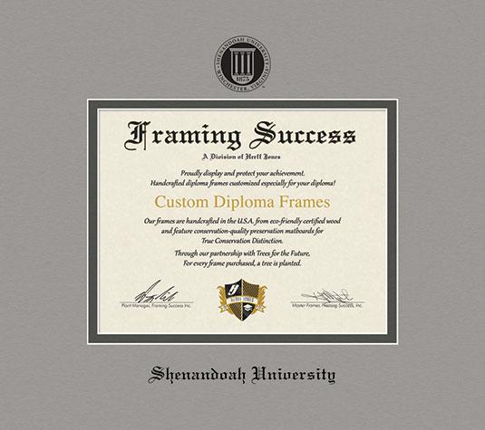 Shenandoah University Diploma (8/13 to 6/24) Frame with Paloma and Moonrock Double Mat and Black Embossing