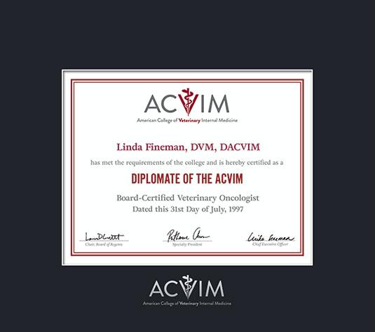 American College of Veterinary Internal Medicine Certificate Frame with Black Mat and Silver Embossing
