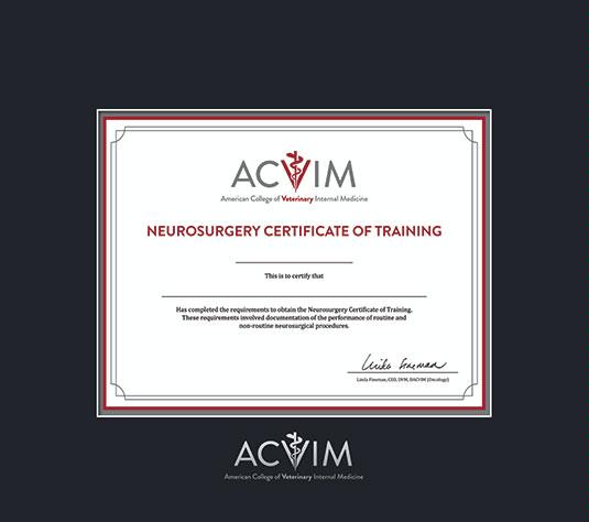 American College of Veterinary Internal Medicine Certificate - Clinical Excellence/Neurological Training Frame with Black Mat and Silver Embossing