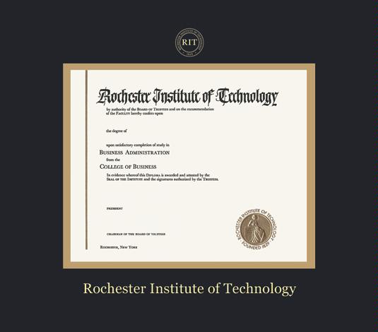 Rochester Institute of Technology Diploma - BA/MA (2019 to Present) Frame with Black and Gold Double Mat and Gold Embossing