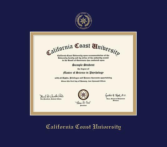 California Coast University Diploma - BA Frame with Navy Blue and Gold Double Mat and Gold Embossing