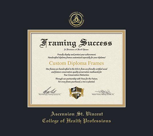 Ascension St. Vincent College of Health Professions Diploma Frame with Black and Gold Double Mat and Gold Embossing