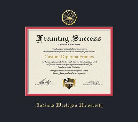 Indiana Wesleyan University Diploma Frame with Black and Red Double Mat and Gold Embossing
