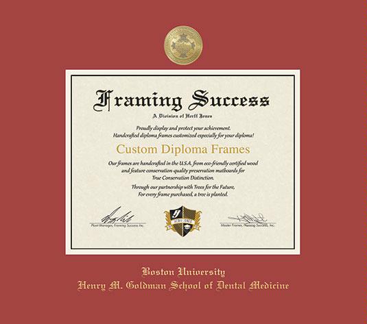 Boston University Diploma - Dental (9/23 to Present) Frame with Medallion and Red and Cream with Black Core Double Mat and Gold Embossing