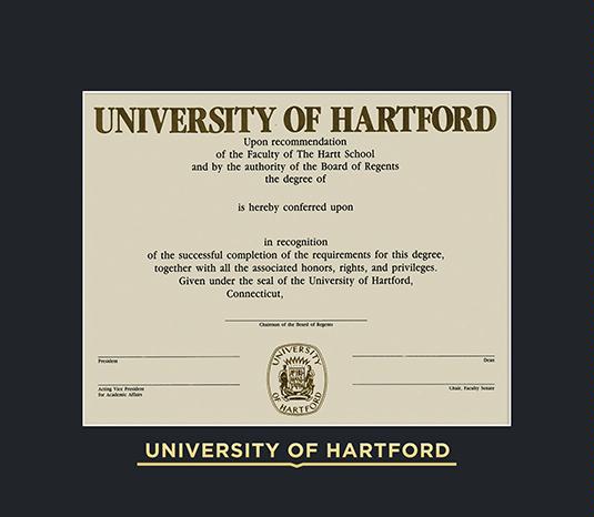 University of Hartford Diploma (8/14 to Present) Frame with Dark Black Mat and Gold Embossing