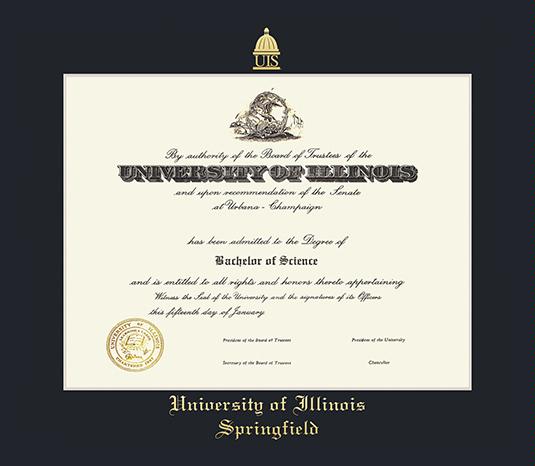University of Illinois Diploma - Springfield Frame with Dark Black Mat and Gold Embossing