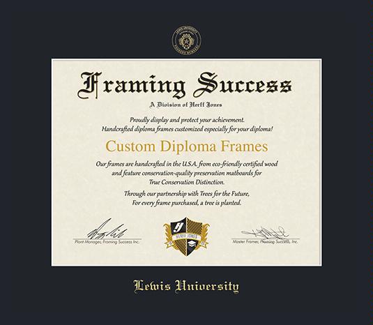 Lewis University Diploma Frame with Dark Black Mat and Gold Embossing