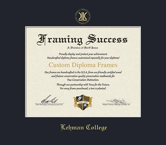 Lehman College Diploma (2022 to Present) Frame with Dark Black Mat and Gold Embossing