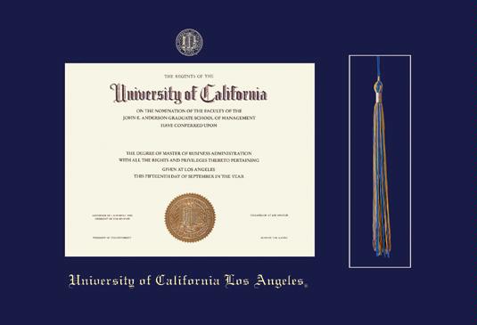 University of California- Los Angeles Diploma - BA/MA/PhD Frame with Tassel Cut-out and Navy Blue Mat and Gold Embossing