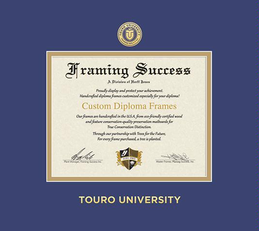 Touro University Diploma - MA (2022 to Present) Frame with Royal Blue and Gold Double Mat and Gold Embossing