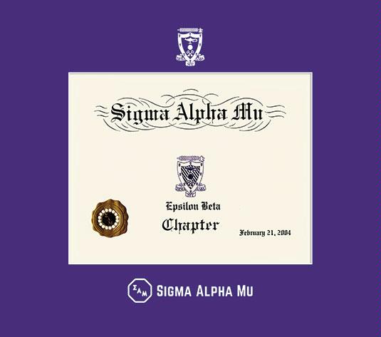 Sigma Alpha Mu Fraternity Certificate Frame with Purple Mat and 2 Color embossed seal