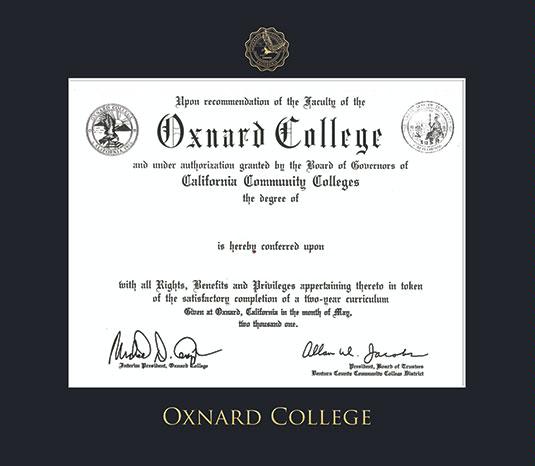 Oxnard College Diploma (2024 to Present) Frame with Dark Black Mat and Gold Embossing