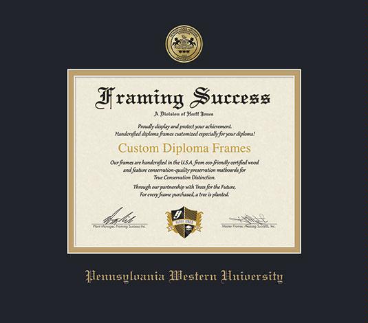 Pennsylvania Western University Diploma - Doc (7/22 to Present) Frame with Medallion and Black and Gold Double Mat and Gold Embossing