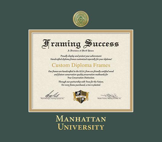 Manhattan University Diploma (9/24 to Pressent) Frame with Medallion and Green and Gold Double Mat and Gold Embossing