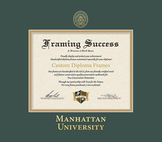 Manhattan University Diploma (9/24 to Pressent) Frame with Green and Gold Double Mat and Gold Embossing