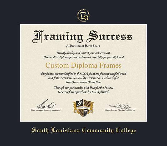 South Louisiana Community College Diploma (10/24 to Present) Frame with Dark Black Mat and Gold Embossing