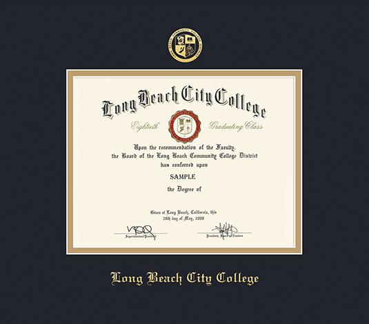 Long Beach City College Diploma (10/24 to Present) Frame with Black and Gold Double Mat and Gold Embossing