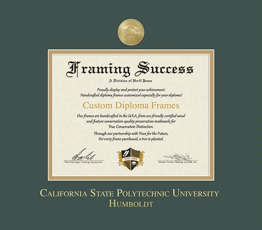 California State Polytechnic University Diploma (2/22 to Present) Frame with Medallion and Green and Gold Double Mat and Gold Embossing