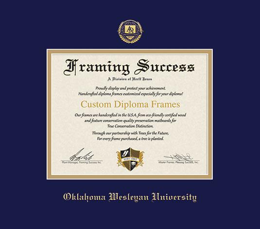 Oklahoma Wesleyan University Diploma - Doctorate Frame with Navy Blue and Gold Double Mat and Gold Embossing