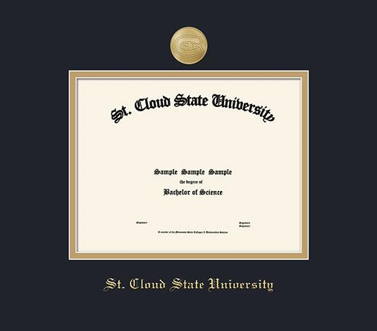 St. Cloud State University Diploma - BA/MA (2021 to Present) Frame with Gold Medallion and Black and Gold Double Mat and Gold Embossing