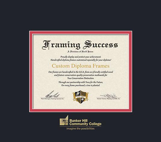 Bunker Hill Community College Diploma Frame with Black and Red Double Mat and Gold Embossing