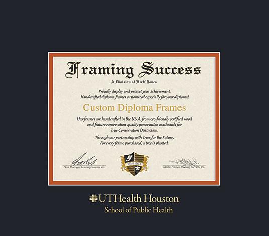 UTHealth Houston Diploma - Public Health (2025 to Present) Frame with Black and Texas Hot Sauce Double Mat and Gold Embossing
