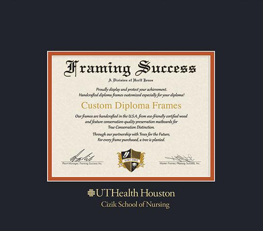 UTHealth Houston Diploma - Nursing (2025 to Present) Frame with Black and Texas Hot Sauce Double Mat and Gold Embossing