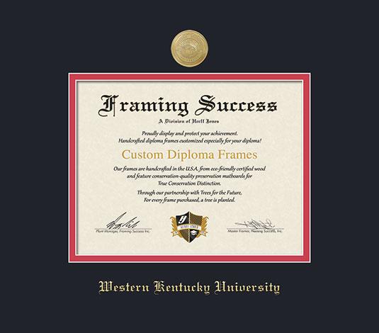 Western Kentucky University Diploma - BA/MA Frame with Medallion and Black and Red Double Mat and Gold Embossing