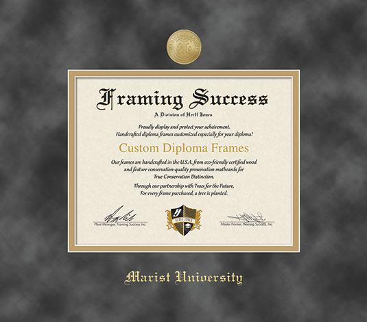 Marist University Diploma - MA (2025 to Present) Frame with Medallion and Grey Suede and Gold Double Mat and Gold Embossing