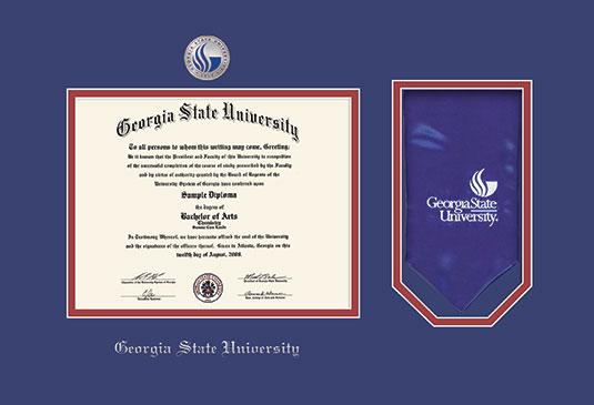 Georgia State University Diploma - BA/MA/Doctorate (9/24 to Present) with Medallion and Stole Cut-out and Royal Blue and Red Double Mat and Silver Embossing