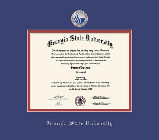 Georgia State University Diploma - BA/MA/Doctorate (9/24 to Present) Frame with Medallion and Royal Blue and Red Double Mat and Silver Embossing
