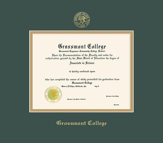 Grossmont College Diploma (2025 to Present) Frame with Green and Gold Double Mat and Gold Embossing