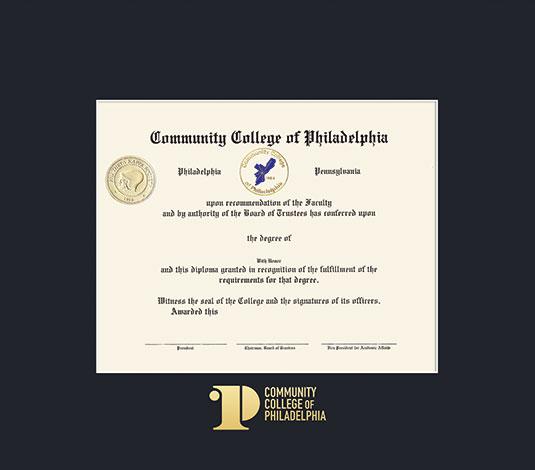 Community College of Philadelphia Diploma (2025 to Present) Frame with Black Mat and Gold Embossing