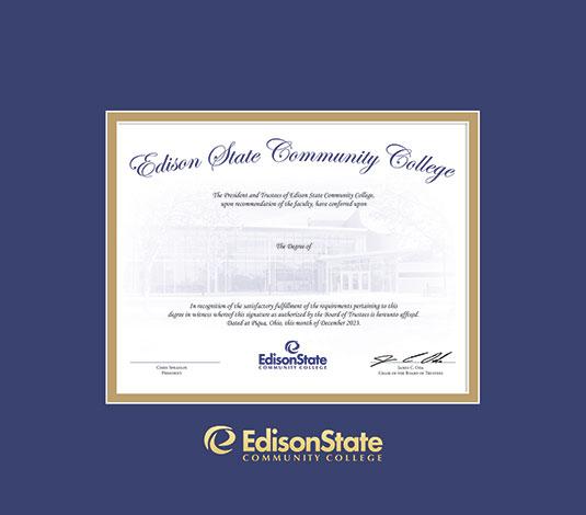Edison State Community College Diploma Frame with Royal Blue and Gold Double Mat and Gold Embossing