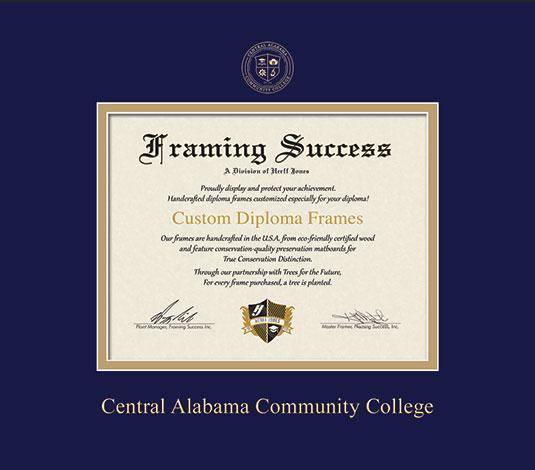 Central Alabama Community College Diploma (6/25 to Present) Frame with Navy Blue and Gold Double Mat and Gold Embossing